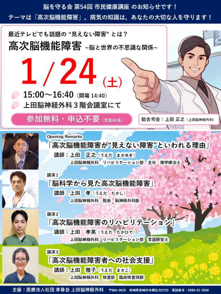 令和8年1月24日(土)は「脳を守る会 市民健康講座」が開催されます!